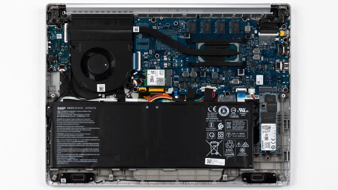 上图是宏碁 蜂鸟 Swift3的拆机实拍图,单热管单风扇组合,热管中间有一个空焊位,是高配版独显所在的位置。