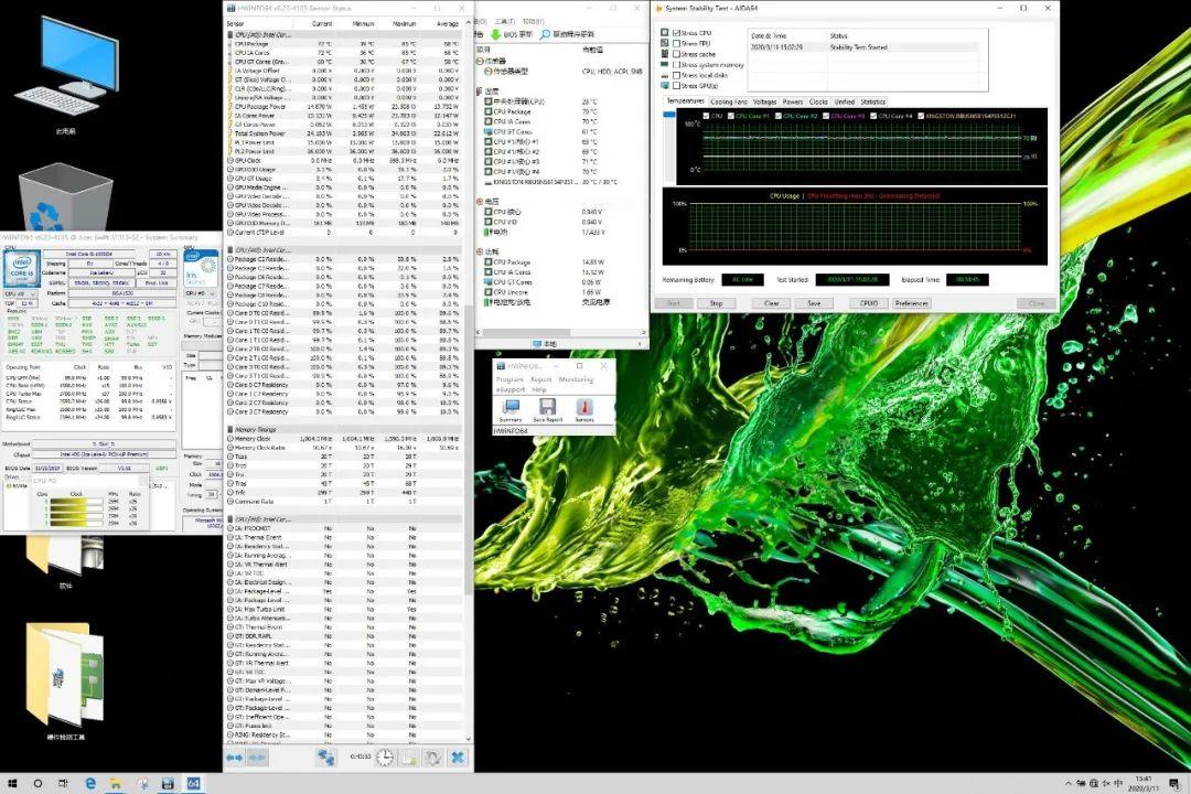 对于核显轻薄本,我们使用负载较低的Stress CPU进行散热测试。