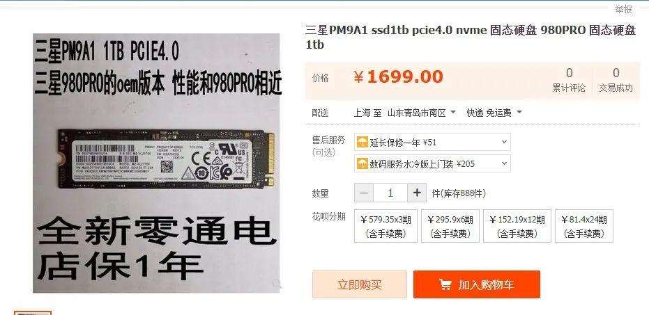 现在三星 OEM 版的 PCIe 4.0 SSD PM9A1 也开始在电商平台上架,1TB 售价在 1699 元到 1999 元之间,三星即将发布的一款11代酷睿笔记本就搭载了这款SSD。