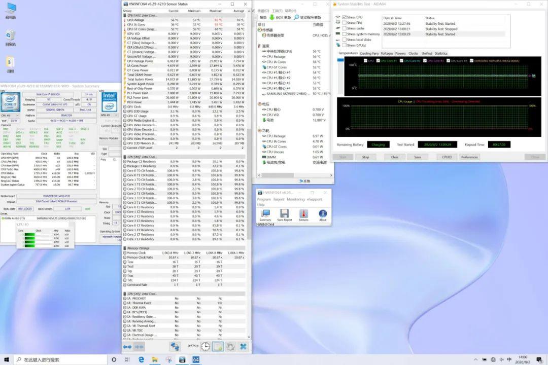 在满载状态下,CPU温度最高93℃,稳定在56℃,功耗7W,频率维持在1.8GHz。