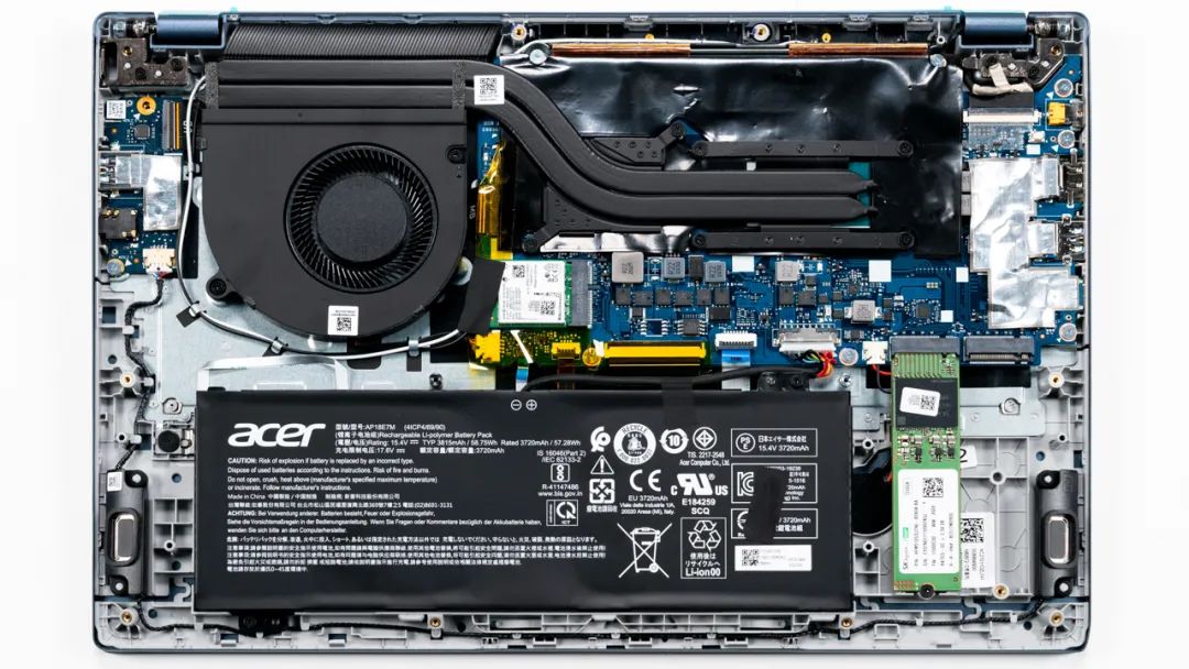 上图是宏碁 非凡S3X的拆机实拍图,双热管单风扇的组合,散热模组和非凡S5比较相似。