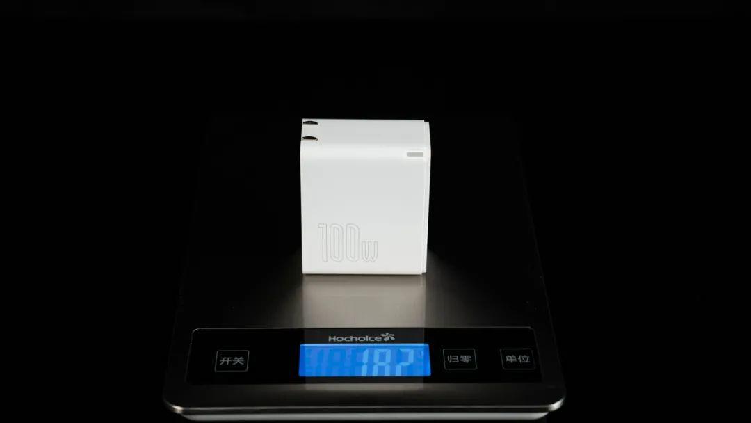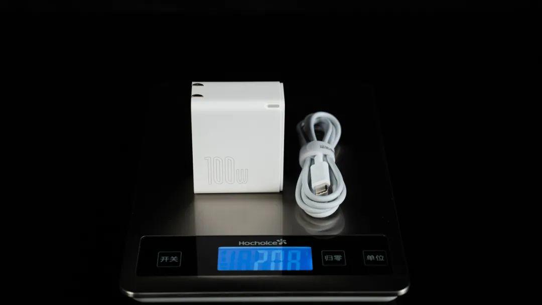 为了达到这个目的,我们搞来了一款支持100W充电的氮化镓笔记本充电器: