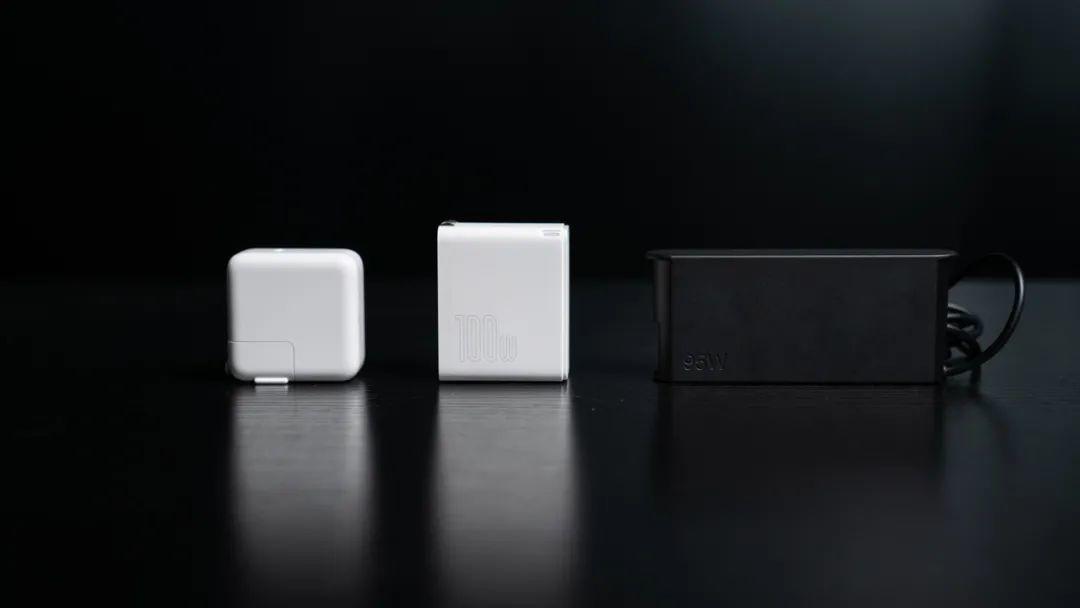 通过上图可以看到,相比起传统的95W适配器,倍思GaN² Fast Charger 100W的体积要小巧很多,几乎只有一半大小。而相比起体积接近的苹果MacBook Air 30W适配器,它的功率远远超过苹果,达到了最大100W的PD输出。