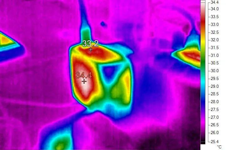 而在充电发热的表现方面,我们选取了100W输出过程中和40W输出过程中的表面温度,给大家一个直观的参考:
