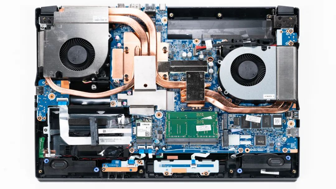 上图是神舟 炫龙M7-E8S3的拆机实拍图,五热管双风扇的组合。使用的是蓝天公模NH50ER,相比之前的版本散热模组有所升级。