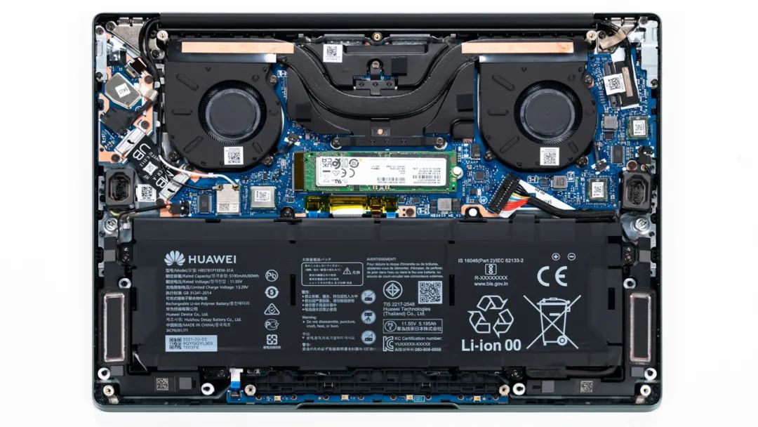 上图是华为 MateBook13s的拆机实拍图,双风扇单热管的组合。