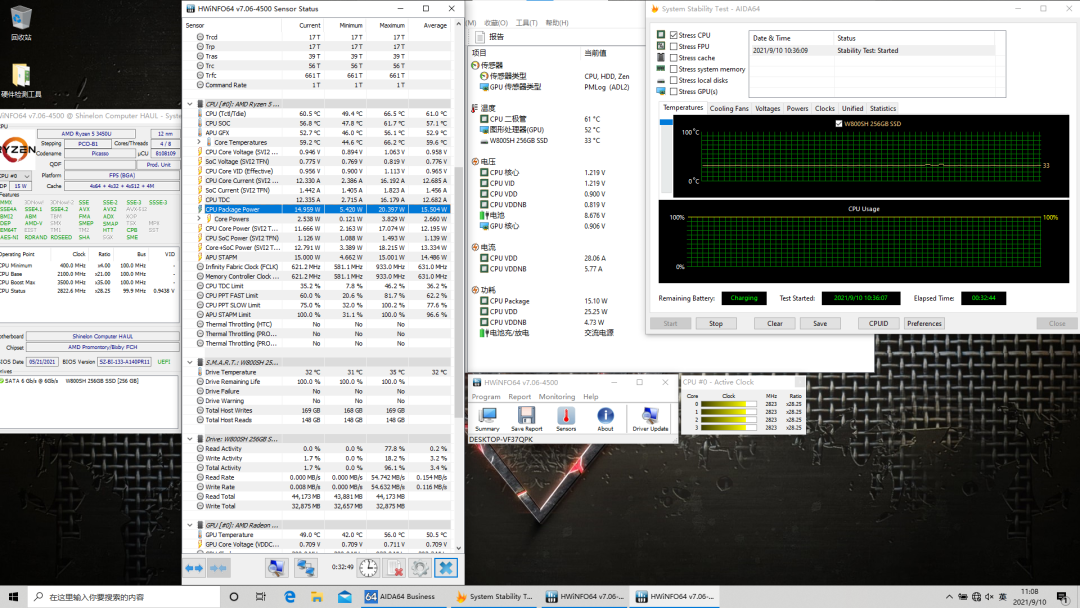 测试机的固态硬盘容量为256GB,型号为W800SH,品牌未知,SATA速率,插槽本身也仅支持SATA协议,如果需要更换要注意协议。