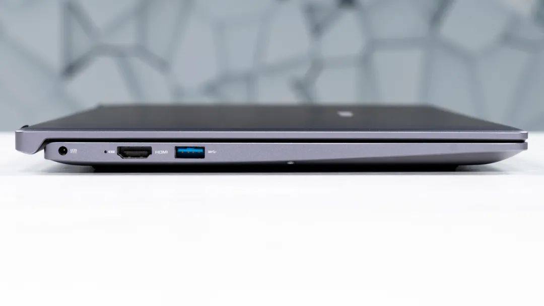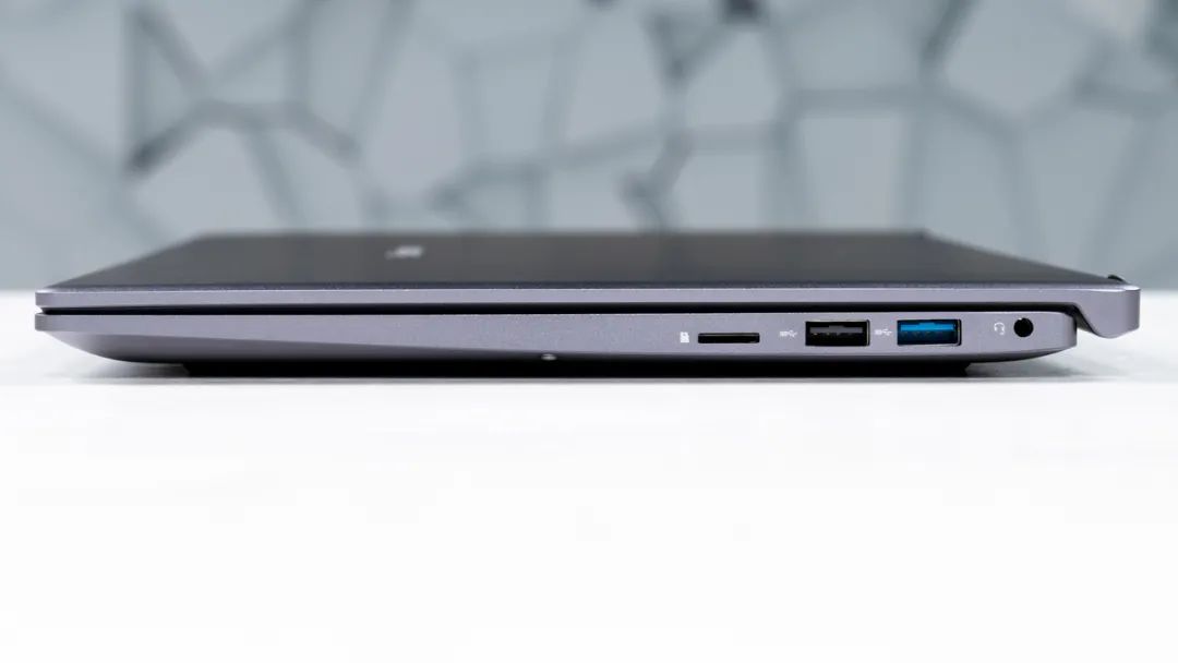 接口方面,这台电脑有三个USB-A(其中3.1/3.0/2.0各有一个),还有TF卡槽、HDMI接口,以及一个圆口电源孔。