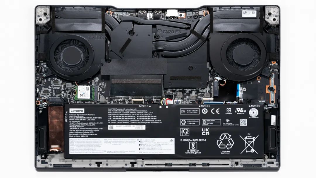 上图是联想 拯救者 R9000X 2021的拆机实拍图,四热管双风扇的组合。