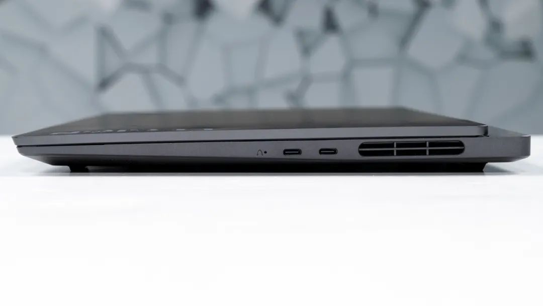 接口方面,机身左侧为3.5mm音频接口、SD卡槽(UHS-I),机身右侧有两个全功能Type-C,机身后方两个USB Type-A(3.2 GEN2),其中一个支持关机充电。