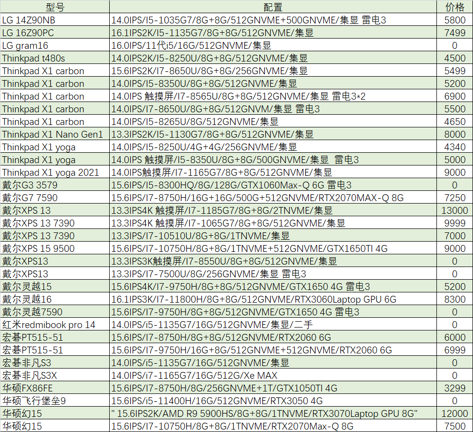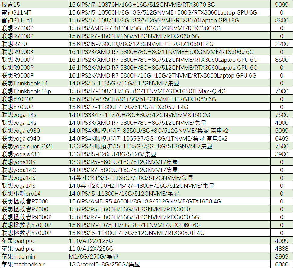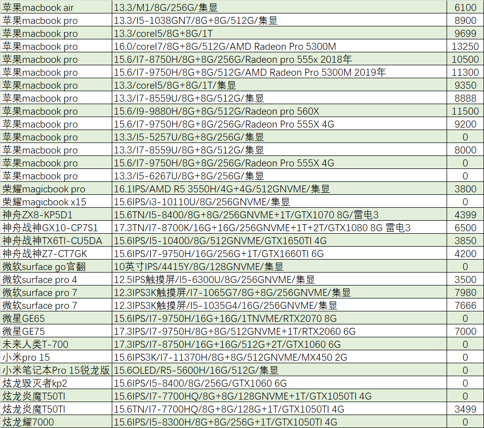 上周已售出机型:(无法列出成色,价格仅供参考)