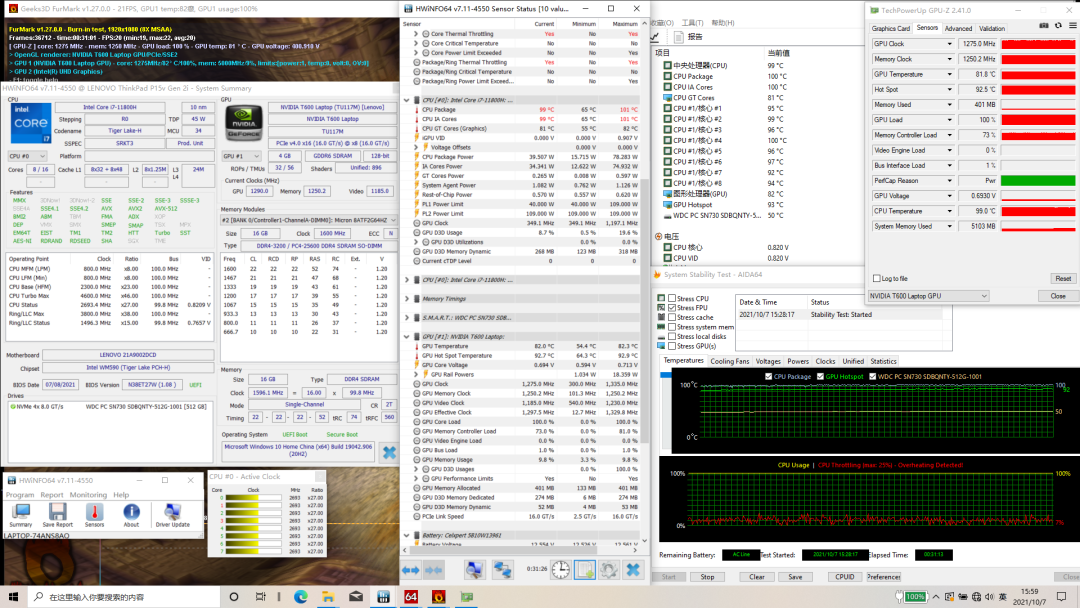 总的来说,ThinkPad P15v的散热表现一般,键盘整体有热感,同时满载CPU温度高,推测可能是双热管+单风扇的散热规格较小。