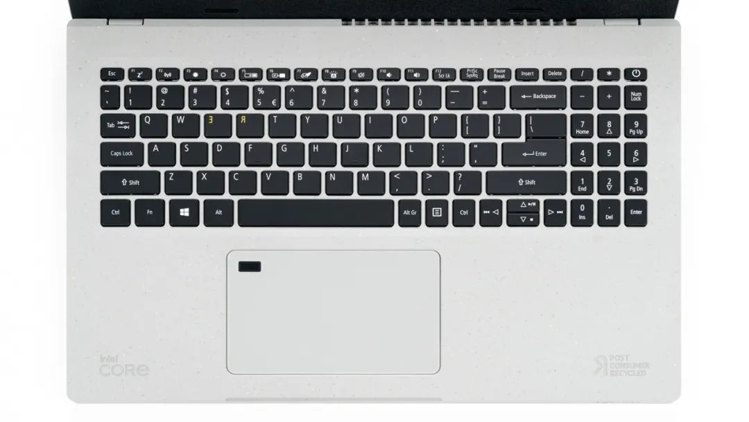环保不是嘴上说的,这台电脑的外壳采用30%PCR塑料,键帽采用50%PCR塑料,屏幕99%可回收材料,外包装采用可回收再生纸,整体碳排放减少了21%。