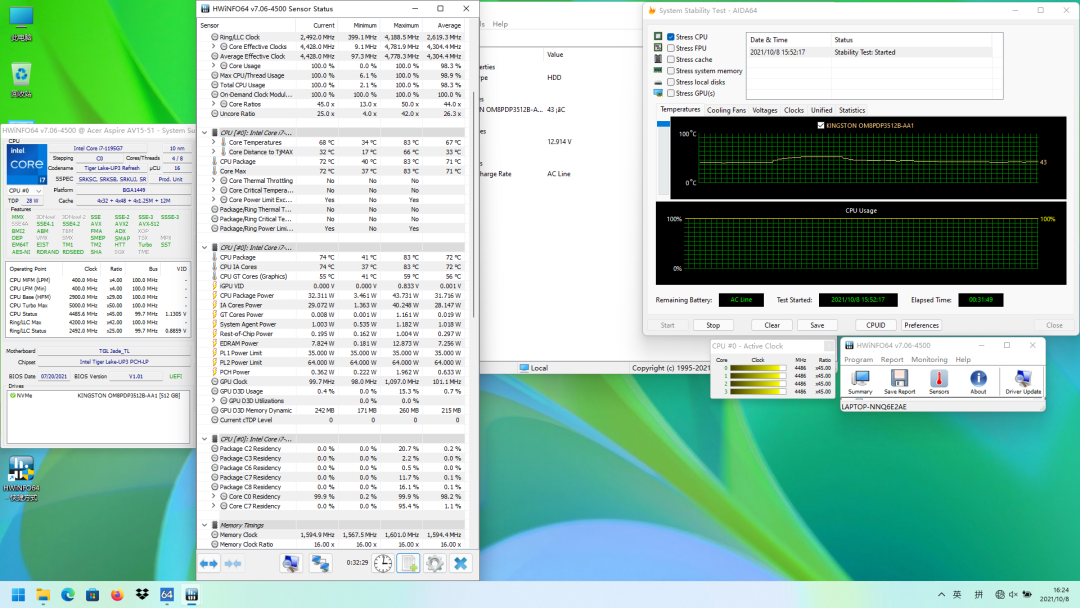 针对无独显的笔记本,我们使用负载较低的Stress CPU进行压力测试。