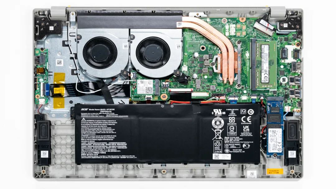上图是蜂鸟·未来 环保版的拆机实拍图,双风扇双热管的组合。