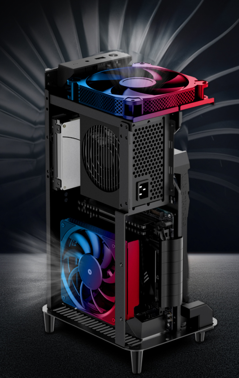 散热方面,乔思伯 V11 前置预置 14cm 大风量低噪音风扇,竖立摆放时,风扇调整反方向吸风。CPU 散热器限高 70mm,电源支持 110mm 内的 SFX 电源,2.5 英寸 SSD 硬盘位有两个。