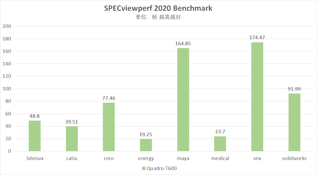 光看GPU规格的话,T600和GTX1650接近,所以专业驱动的提升还是很大的。