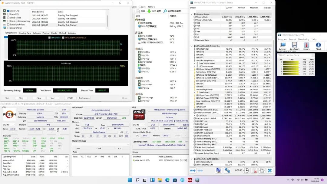 总的来说,联想 IdeaPad14 2022锐龙版的散热表现中规中矩,核心温度很低,噪音也很低,表面温度属于普通水平,毕竟散热规格摆在那里,不能有太多期待。