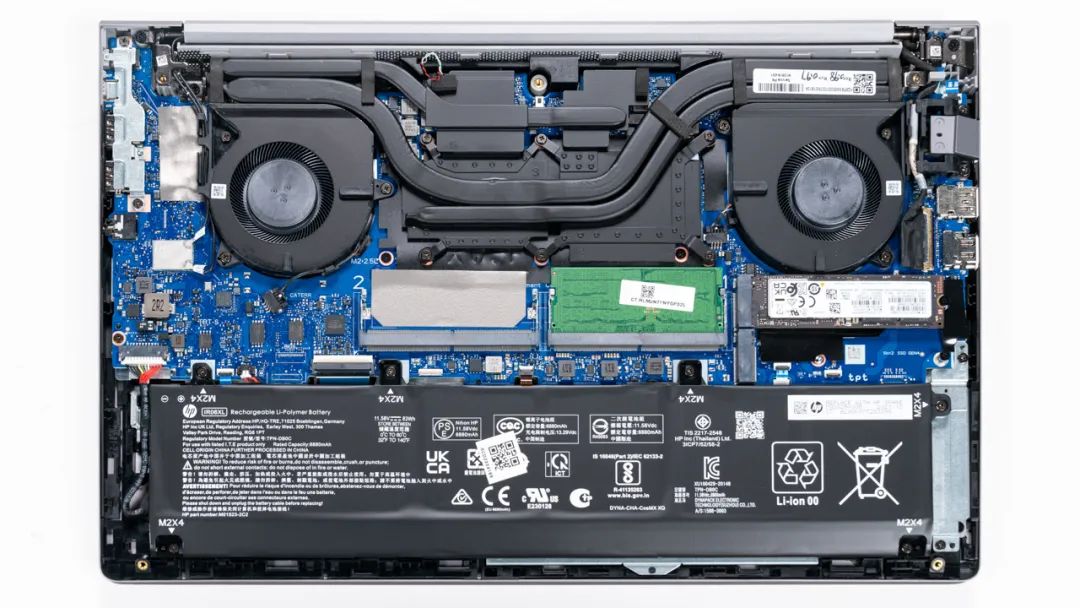 上图是惠普 战99 2022的拆机实拍图,三热管双风扇的组合。
