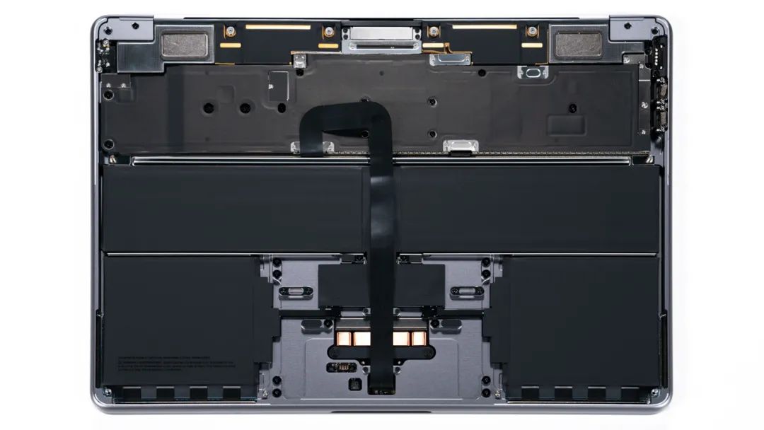上图是MacBook Air的拆机实拍图,没有风扇也没有热管,只能看到电池和充当均热板的屏蔽罩,虽然中间的排线有些突兀,但也算妥妥的科技涩图了。