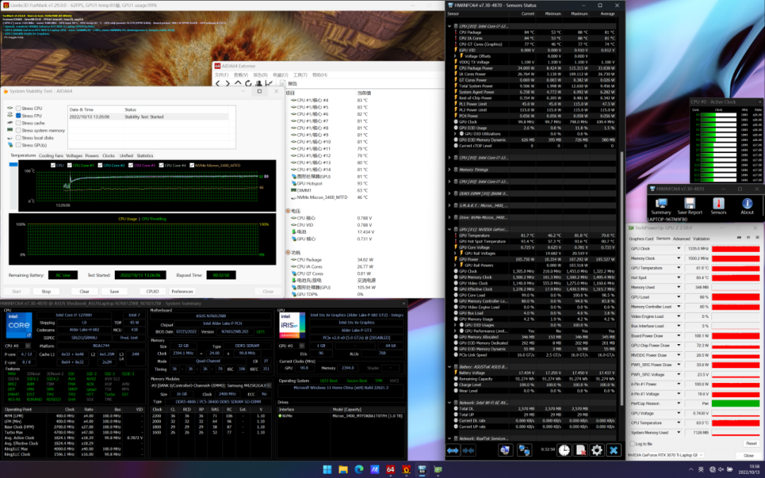 显卡功耗约106W,温度81.7℃,频率1335MHz。