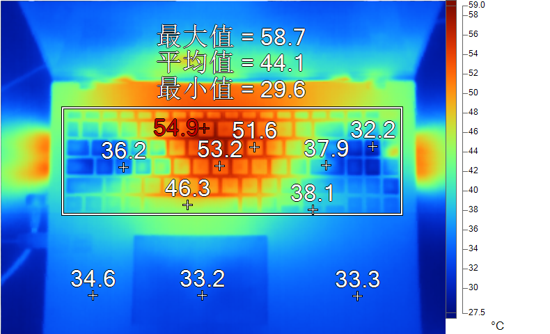 1,高负载下,键盘温度高
