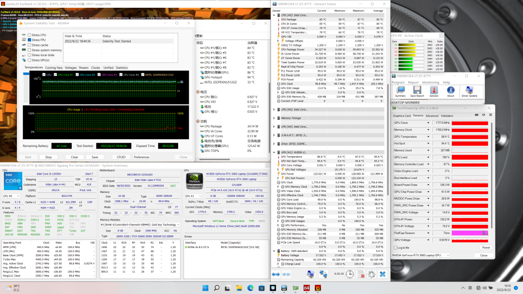 从上面的各项数据,我感受到【追求纯粹性价比是有代价的】,虽然这台电脑有140W满血RTX3060,但是在我们的室温标准下单烤显卡都只能跑到132W,也就是说散热跟不上功耗设定。