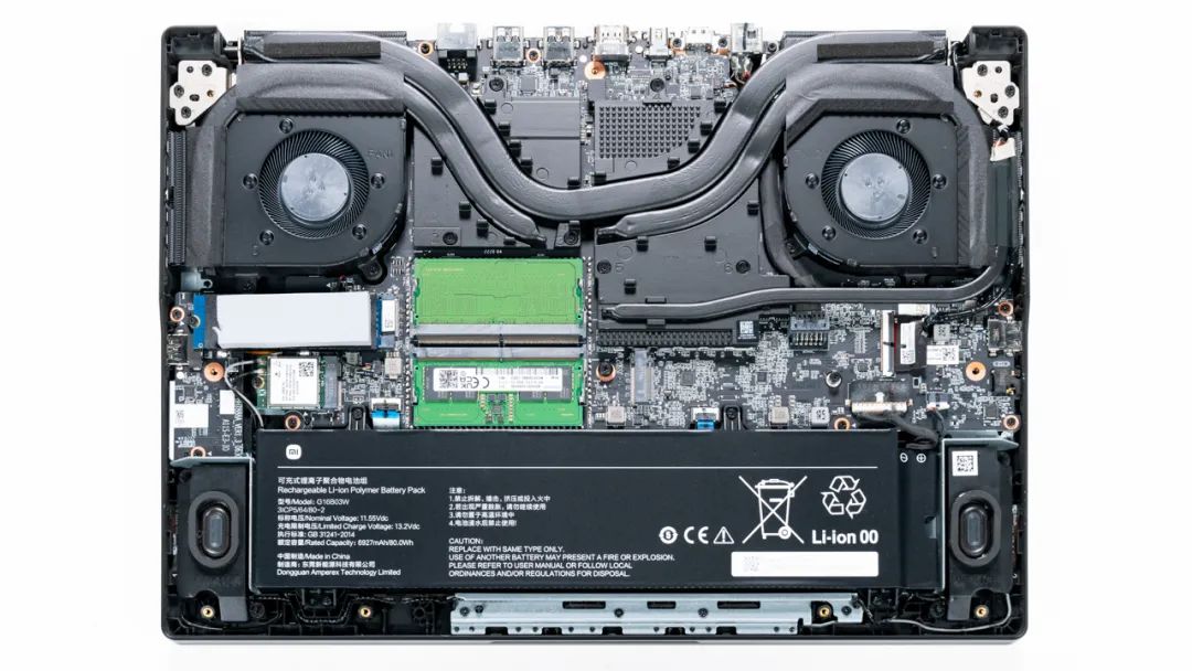 上图是Redmi G Pro锐龙版的拆机实拍图,4热管双风扇的组合。