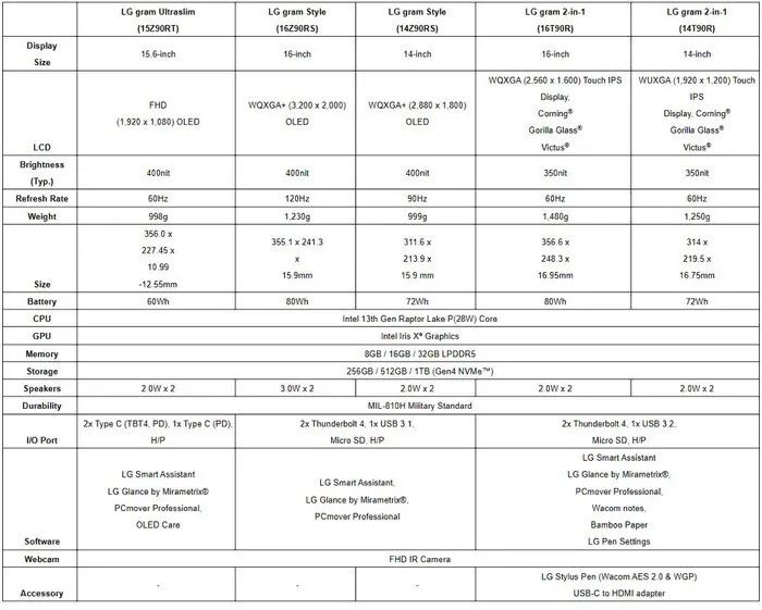 IT之家了解到,新款 LG Gram Style 推出了 14 和 16 两个新尺寸,长宽比为 16:10。16 英寸显示屏的分辨率为 3200 x 2000,刷新率为 120Hz;14 英寸显示屏的分辨率为 2880 x 1800,刷新率为 90Hz。该笔记本的具体参数如下: