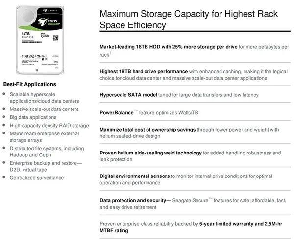 售价方面,希捷Exos X18共有SATA和SAS两种接口版本提供,而其中的SATA版定价562美元。
