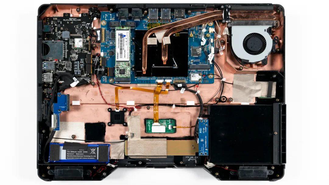 上图是宏碁 EnduroN7的拆机实拍图,单风扇双热管的组合,三防本的拆机图全世界都没有几张,所以它很珍贵。
