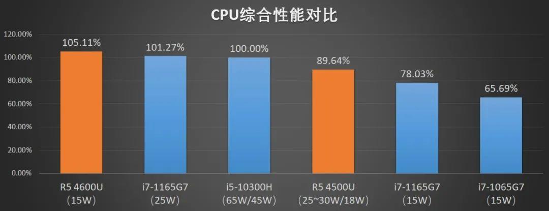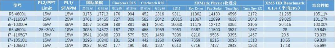 理论性能测试中,25W的i7-1165G7性能已经超过了功耗更高的i5-10300H。