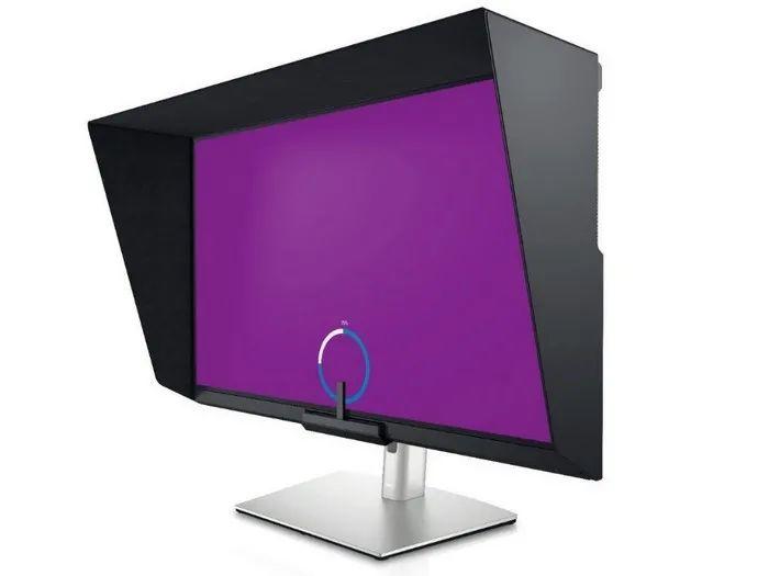 戴尔 UP3221Q 基于 miniLED 面板,拥有一个磁吸式的遮光罩,减少不必要的环境光线、眩光和反射。
