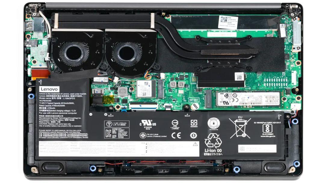 上图是小新Pro13的拆机实拍图,双热管双风扇的组合,和上一代几乎一模一样。