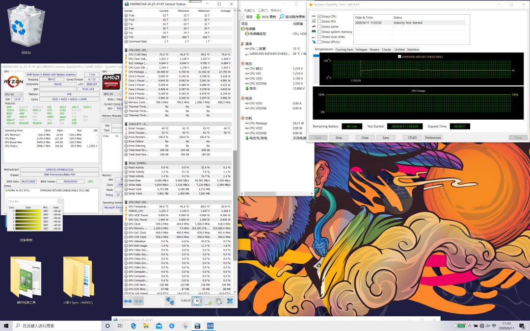 针对轻薄本,我们使用负载较低的Stress CPU进行压力测试。