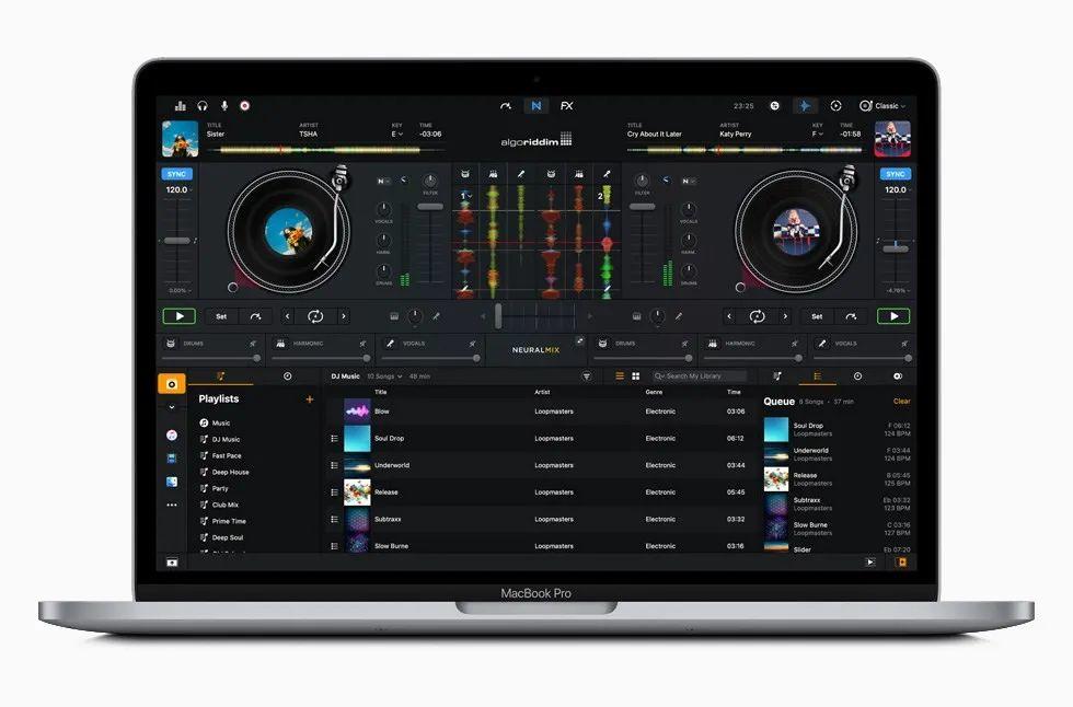得益于神经网络引擎出色的性能,可在 djay Pro AI 中实时分离出录音中的节拍、乐器和人声。