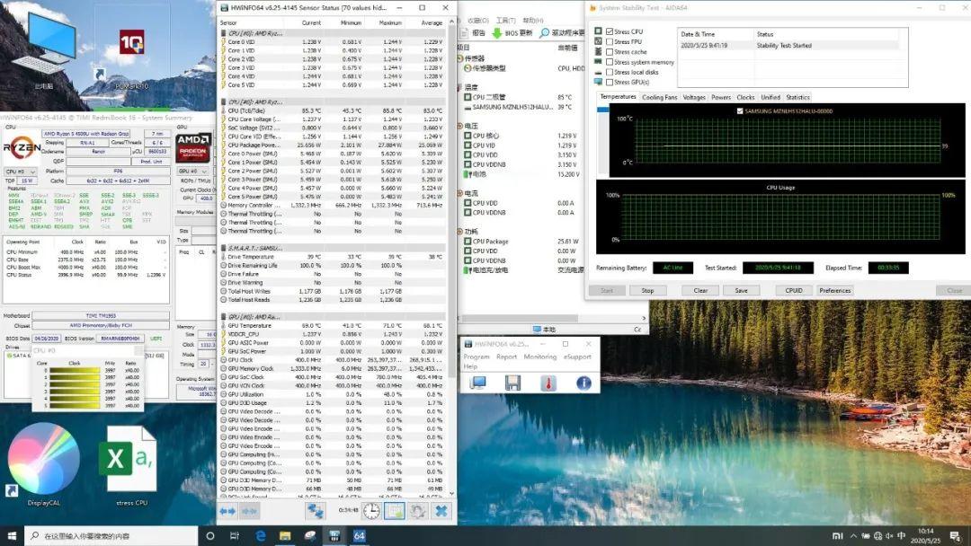 在满载状态下,CPU温度最高85.3℃,功耗25.6W,频率维持在4.0GHz。