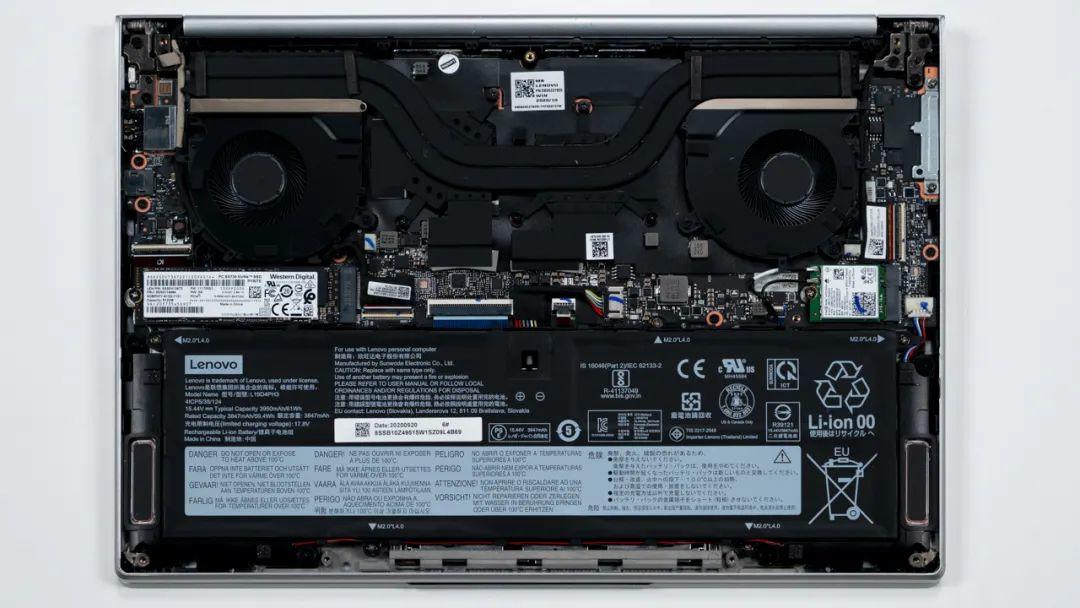 总的来说,小新Pro14依旧拥有着出色的散热表现,相比小新Pro13,Pro14使用了容量更大、体积更小的电池,多出来的空间也让给了风扇。