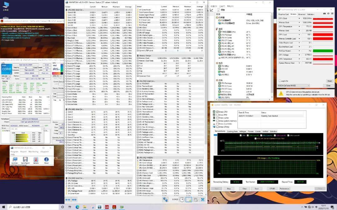 针对轻薄本,我们使用负载较低的Stress CPU+Furmark进行压力测试。