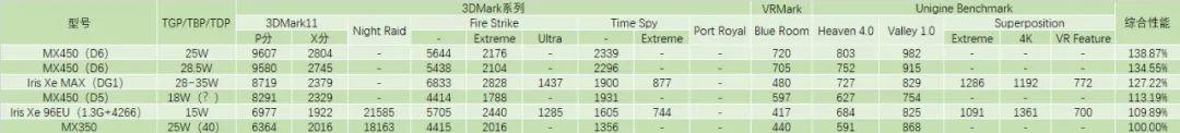 由于频率的问题,两个MX450在跑分上出现了“倒挂“,综合性能相差约3%。注意在游戏中,”超大杯“的MX450比起”大杯“还是有优势的。该性能仅供参考,后续如果有别的25W MX450机器,我们会重新测试。