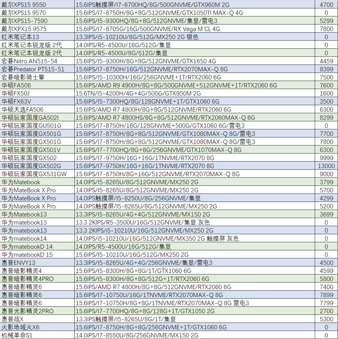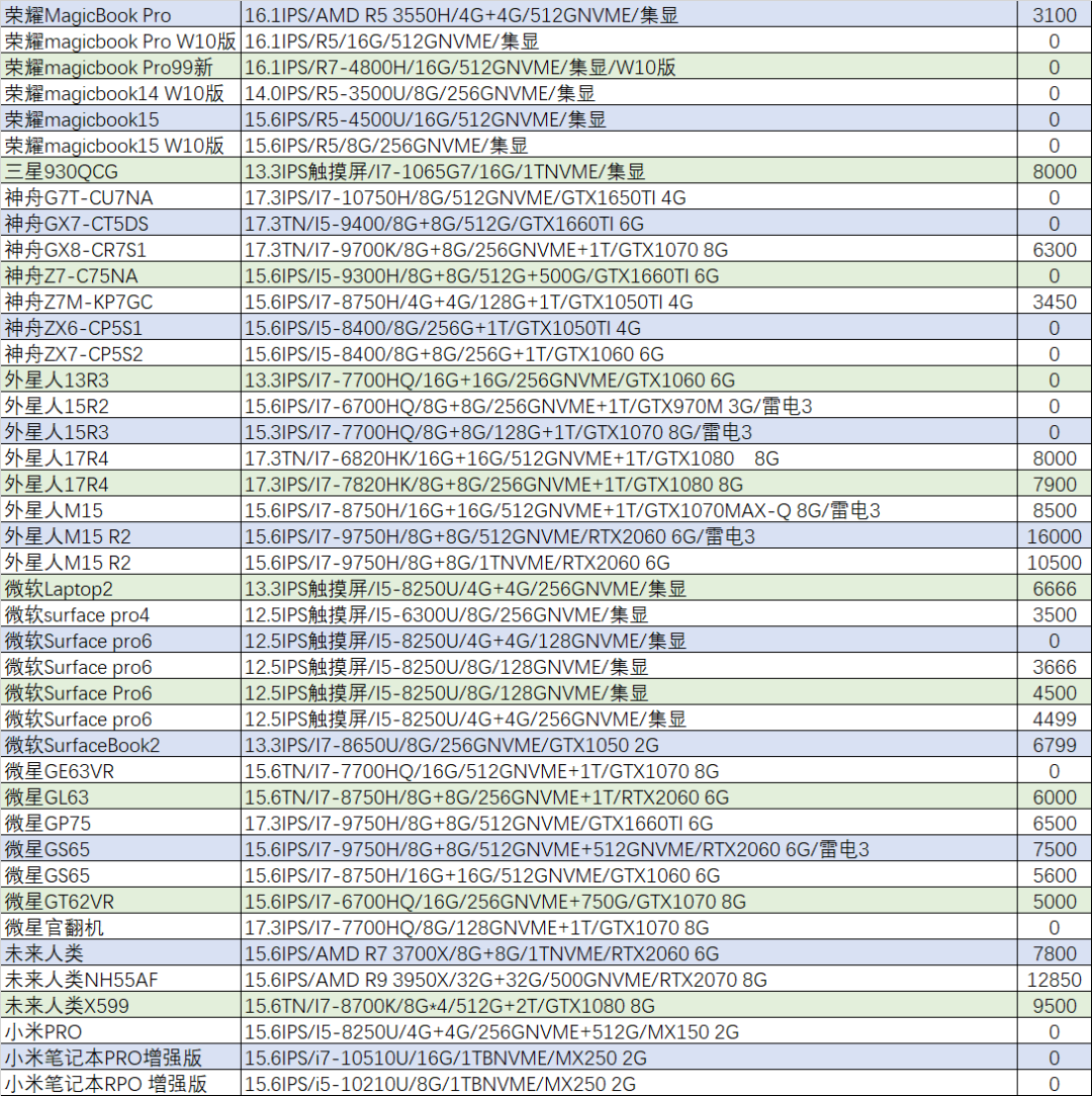 配置:15.6英寸72%NTSC IPS /I3-8100/16G/256GNVME+1TB/GTX1050TI 4G