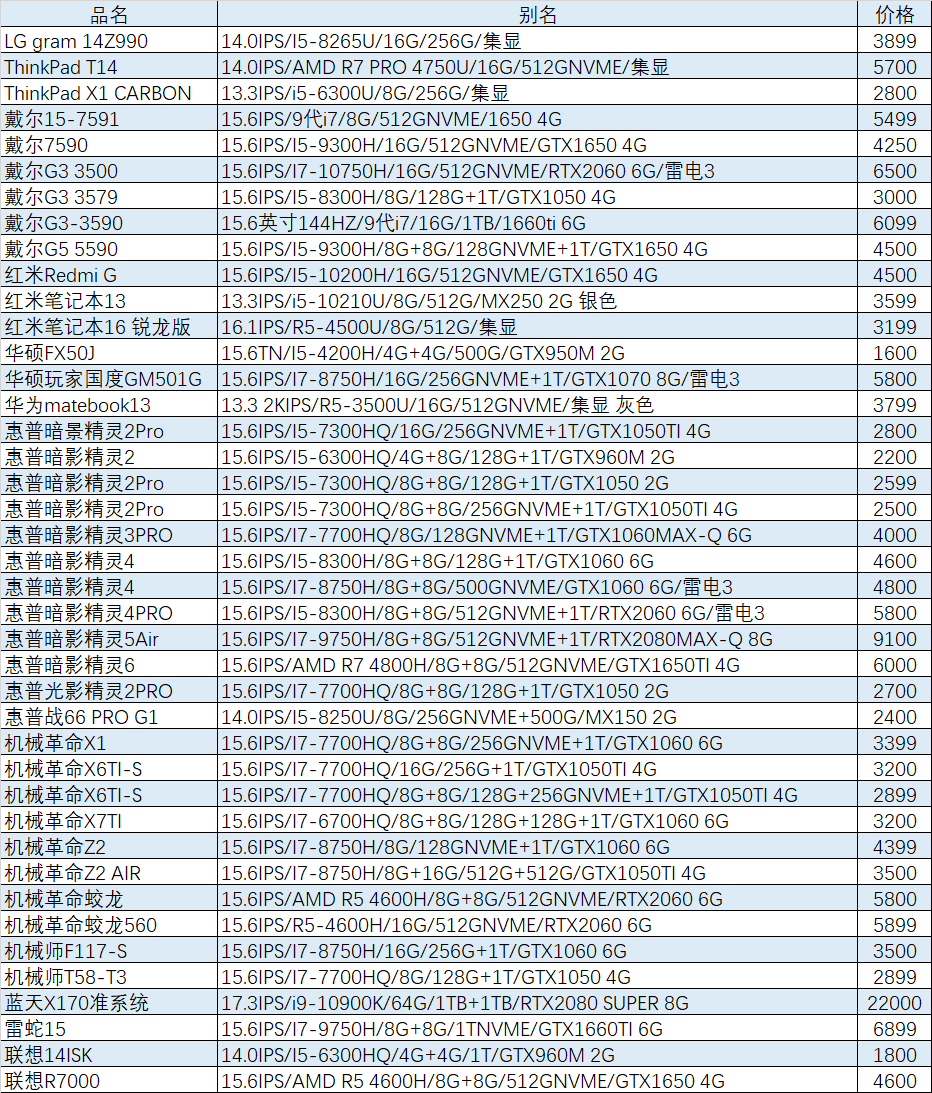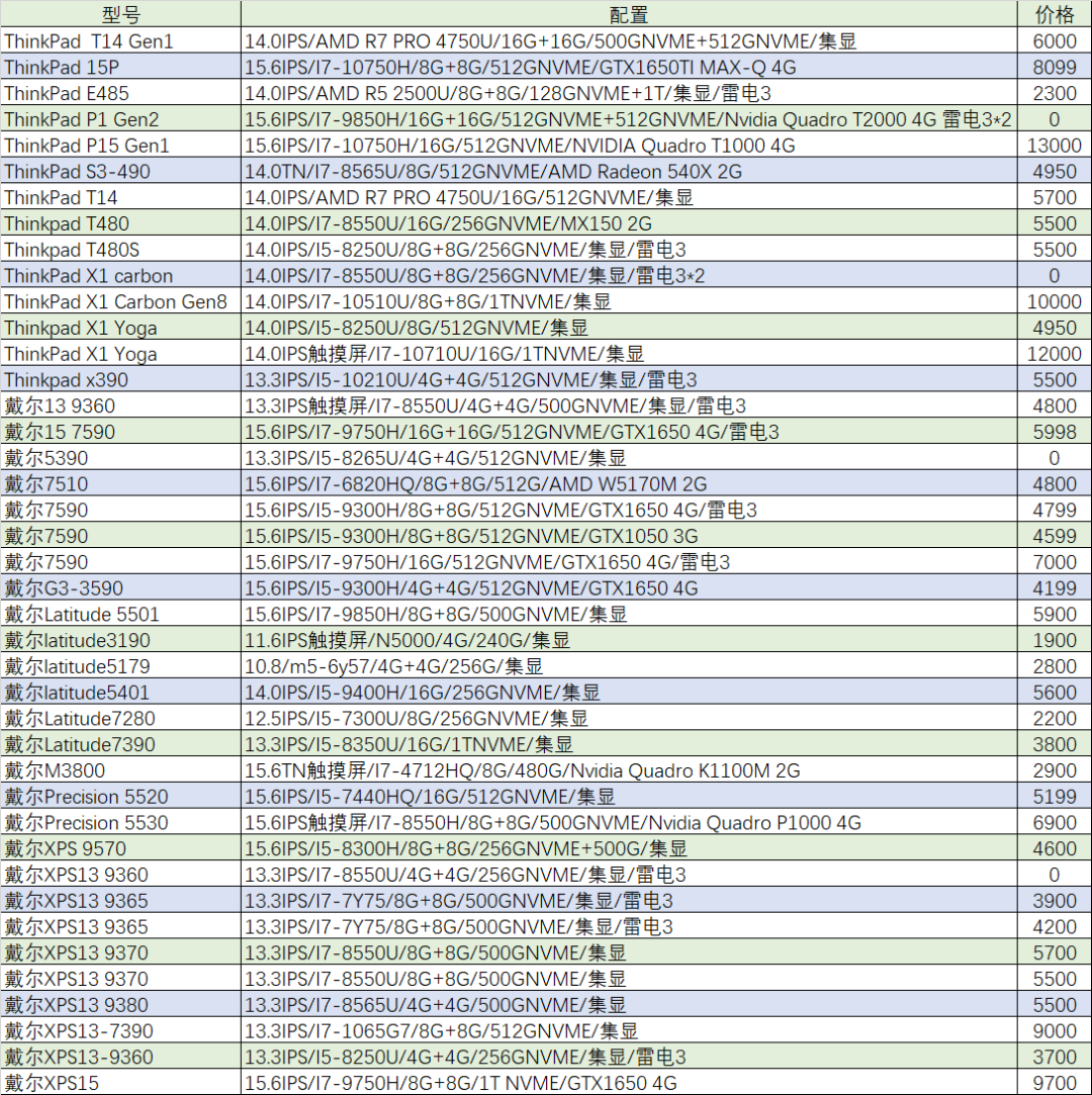 上周已售出机型:(无法列出成色,价格仅供参考)