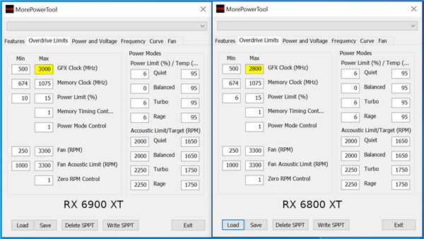 通过RX 6900XT的BIOS文件,并使用MorePowerTool对其进行分析,他发现AMD给RX 6000系列各款型号都设下了频率上限,而且是写死在硬件中的,无论是AIB厂商还是超频玩家,都不可能突破。