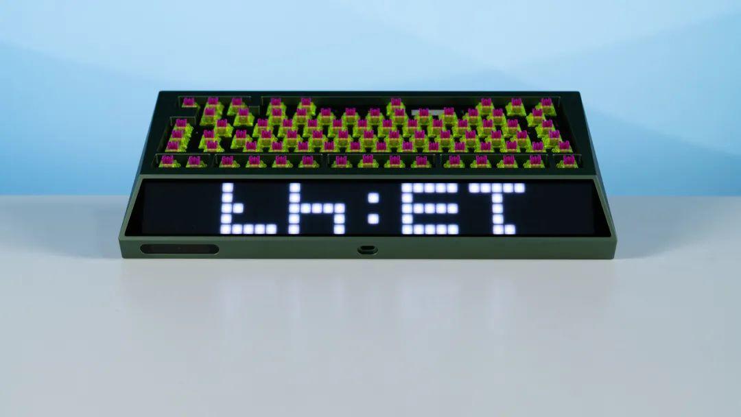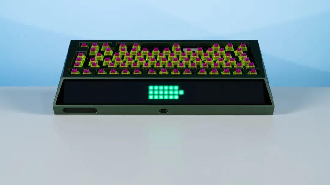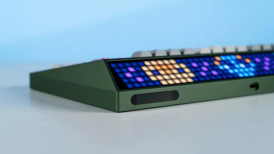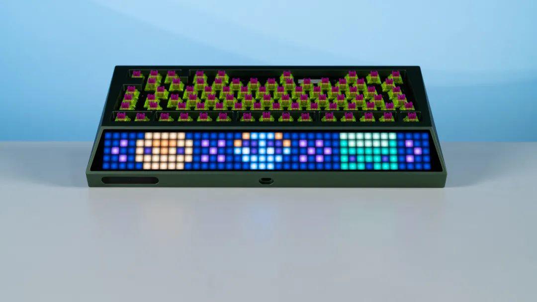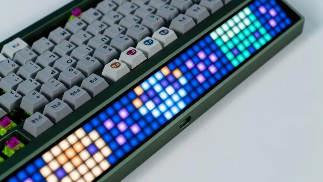 通过功能键FN+F12,可以切换几种默认内置的灯光效果,其中包括“跑马灯”、“滚动字符”、“显示电量”、“显示时间”等等,用户也可以直接进入https://diy.angrymiao.com/这个链接,自定义各种动画效果,并且支持用户投稿、分享给别的用户。