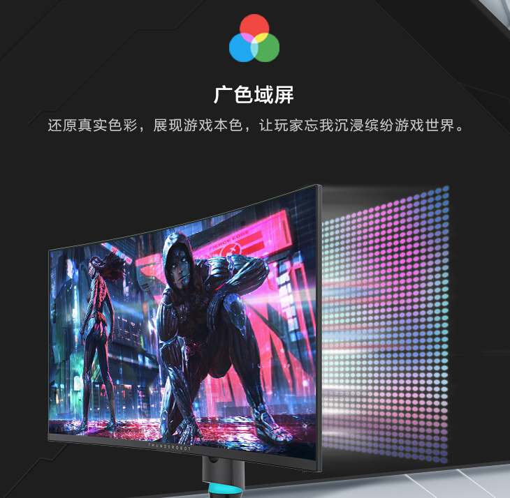 色域方面,雷神官宣这款显示器支持广色域,但是并没有详细标注出色域覆盖参数。