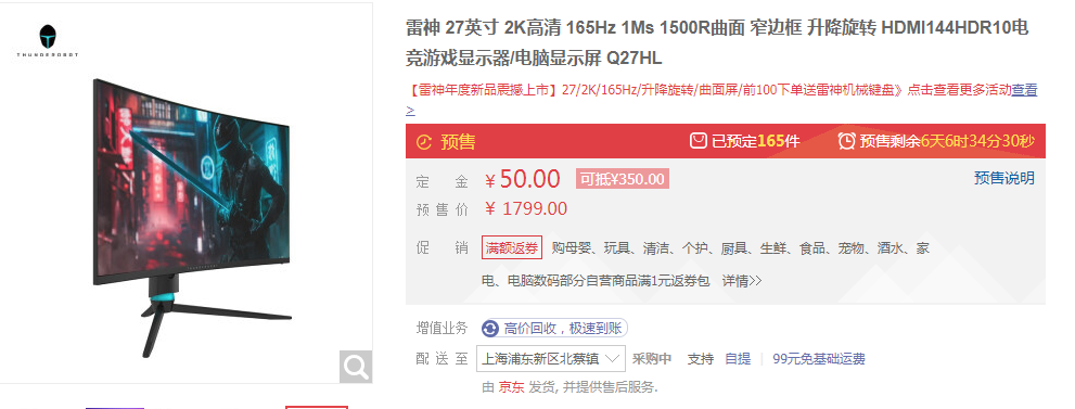 就在日前雷神推出了Q27HL显示器,首发到手价1499元。