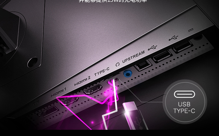 接口方面,该显示器拥有一个DP1.4接口、两个HDMI 2.0b接口,一个支持15W输出的C口、三个USB 2.0接口(一个上行B口两个下行A口)。