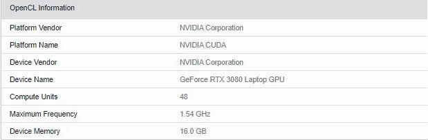 RTX 3080 的移动版已经现身 Cinebench,配有 48 组核心,也就是 6144 CUDA,GPU 频率为 1.54GHz,配备了 16GB 显存。另外,CPU-Z 软件上出现了一款英伟达 RTX 3080 变种的信息,GPU 频率大幅降低,显存也从 16GB 降到了 8GB,预计为英伟达 RTX 3080 Max-Q 版本。
