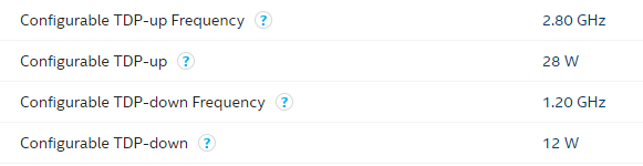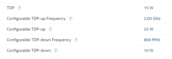 上图是8代酷睿i7-8550U处理器的功耗建议,标准TDP是15W,设定的范围是10~25W。