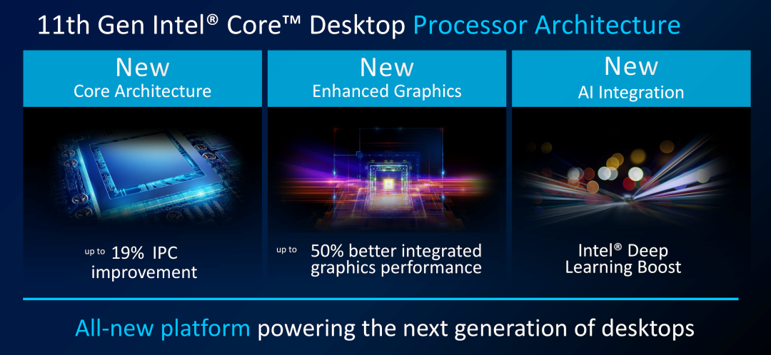 新的11代桌面端处理器,依旧采用了14nm“老”制程,但微架构更新了,抛弃了沿用多年的Skylake微架构,因此IPC对比之前会有提升,官方宣称能提升幅度达到了19%。